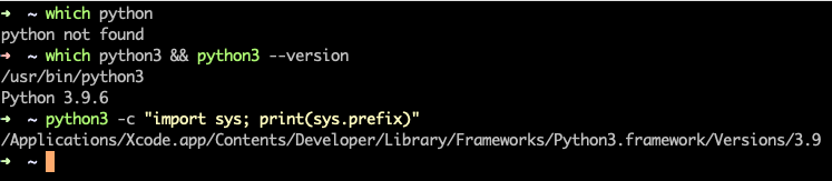 python3 -c "import sys; print(sys.prefix)" | To check where this Python is installed |